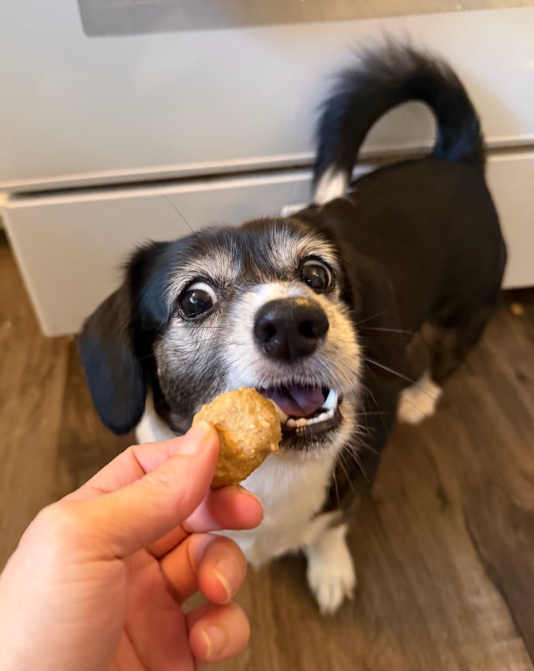 Every Fur-mula is handcrafted and lovingly “brewed” in our cozy home kitchen right here in Lansing, Michigan. We start with locally sourced, human-grade ingredients — Michigan-grown oats, free-range eggs from nearby farms, and wild-caught salmon from the Great Lakes — measuring, mixing, and baking in small batches to guarantee freshness in every bag. No factories, no shortcuts, just a rolling pin, a warm oven, and the same care we’d give our own pets.